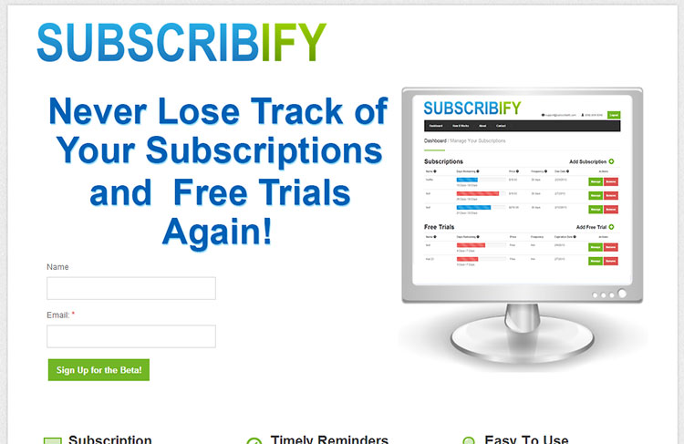 Subscribify is a startup that came out of Startup Weekend San Diego. We will be launching our private beta on March 1st. Check us out!